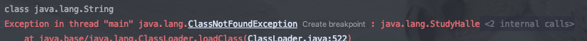 String클래스는 있지만, StudyHalle의 클래스는 없으므로 ,