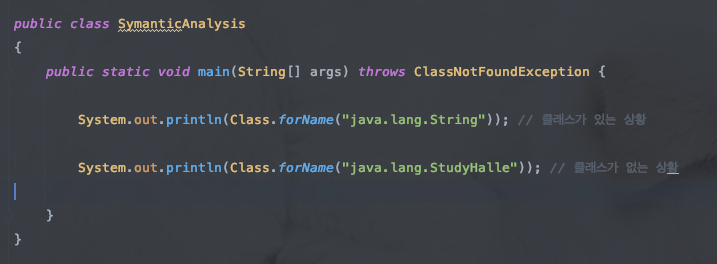 로딩 시점에는 클래스가 있는지 없는지 확인하게 되는데 만약에 없을 경우, 이 시점에서 “Class Not Found Exception”이 발생 하게 된다.