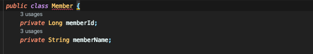만약에 멤버라는 객체가 있다고 가정해보자, 이 클래스의 필드는 memberId, memberName 두가지가 있다. 필드는 신경 쓰지말고, 만약에 Member 객체를 생성하고 인스턴스에 값을 집어넣을 때