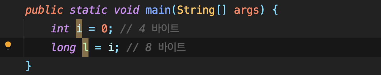 왜 이렇게 간단하게 되냐면 자바에서 타입이 변경되면서 데이터의 유실이 안된다는걸 보장된다는걸 알기 때문에 자동으로 해준다. 데이터 유실을 보장해준다는 말이 좀 어려울 수 있으니 그림으로 설명을 하자면,