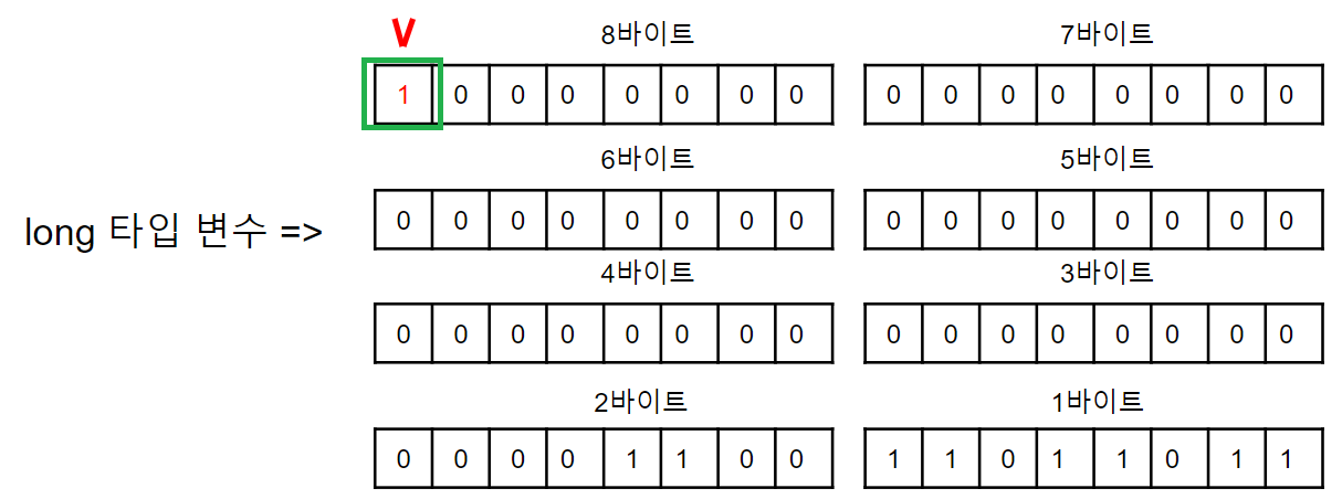 예를들어 만약 long에서 전부 8바이트를 다 사용하고 있다면?