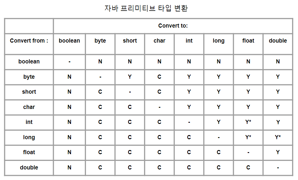 프로모션은 사실 아무것도 안해도 자동으로 자바가 타입변경을 진행해주도록 한다.