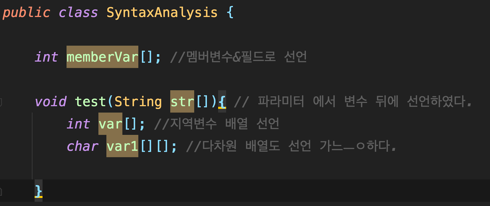 사실 이런 호환성에 문법은 찾아보기 어렵다. 그래서 자바표준 문법에 맞게 쓰는걸 추천한다.