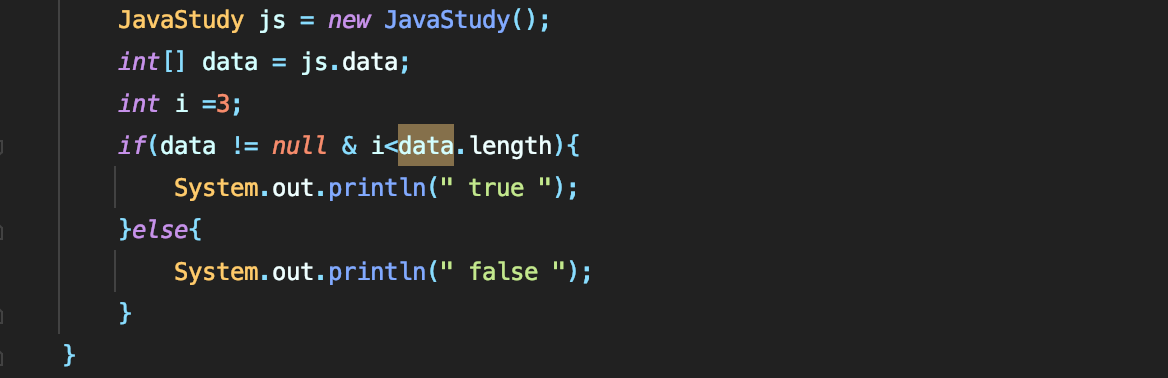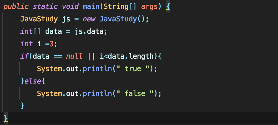 똑같이 첫번째 피연산자인 data == null 를 연산하고 true 이면, i < data.length 를 무시하고 바로 true를 반환하게 된다. 이 &&연산자와 같이 조심하여 써야 한다.