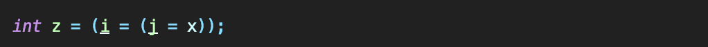 이항연산자와 다르게 모든 대입연산자는 왼쪽부터 처리되는게 아니라 오른쪽부터 처리되는 우선순위를 가지고 있다 예를들어보자