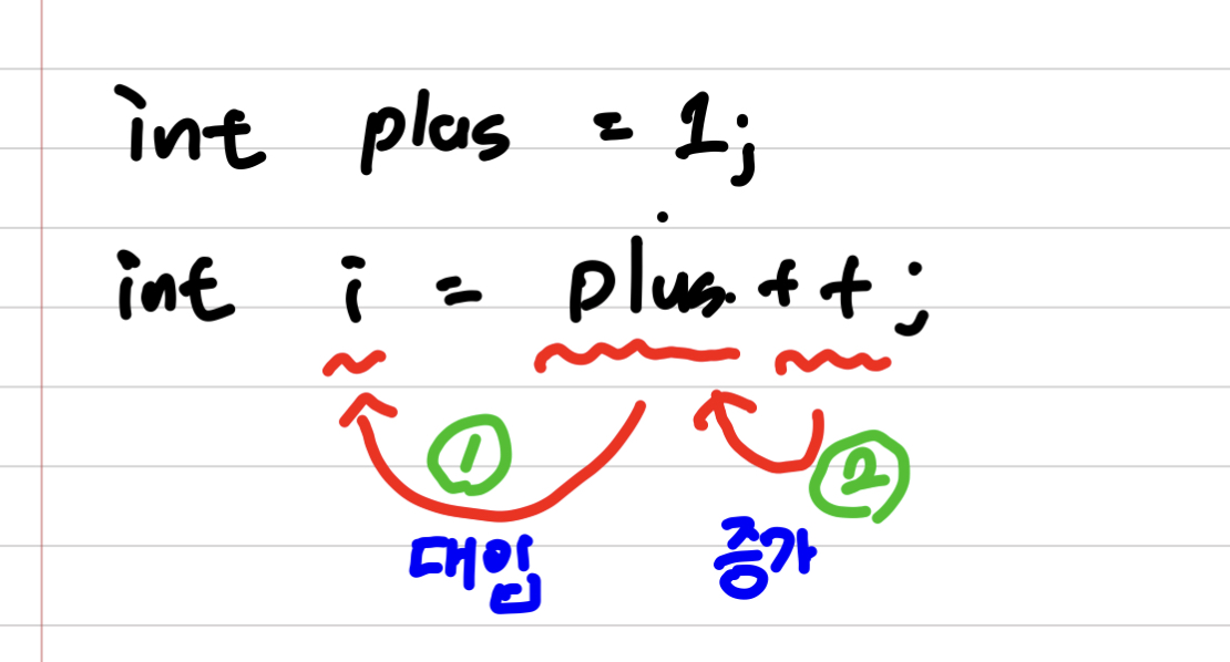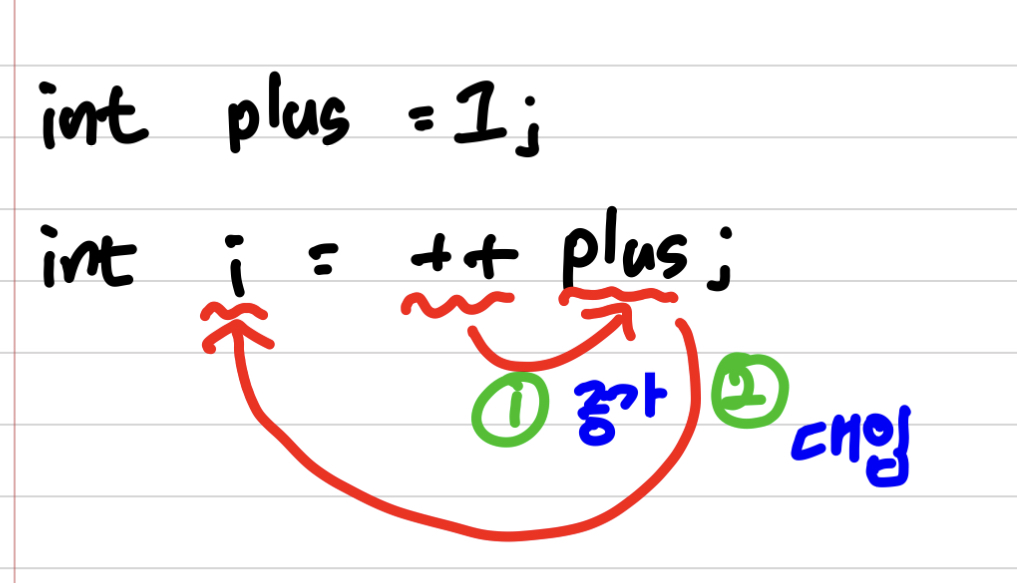 다음과 같이 동작한다고 보면 된다. 이는 -- 감소 연산자에서도 동일하게 작동한다 : ) 즉, 이말이 뭐냐면
