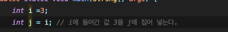 대입 연산자는 값을 컴퓨터 메모리의 일부에 대입하거나, 저장하기 위해 사용된다. 이게 무슨 뜻인지 잘 모를 수도 있으니, 예제를 보면서 확인해보자 *혹시 만약에 JVM에서 메모리 관리를 어떻게 하고있는지 모른다면 JVM글을 정리한 블로그를 한번 보고오도록 하자
