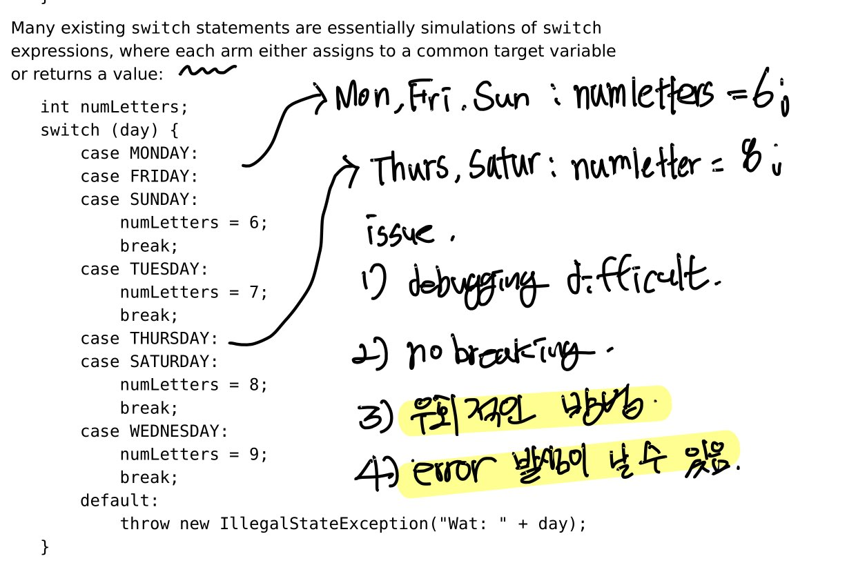 어느정도 사실 공감은 한다. 애초에 switch 문 자체가 엄청난 로직이 있는 것도 아니고, 뭔가 장황하다는 말은, 실제로 코드를 짜보면 불필요하게 장황하다 라는 것도 일리 있는 말이다.