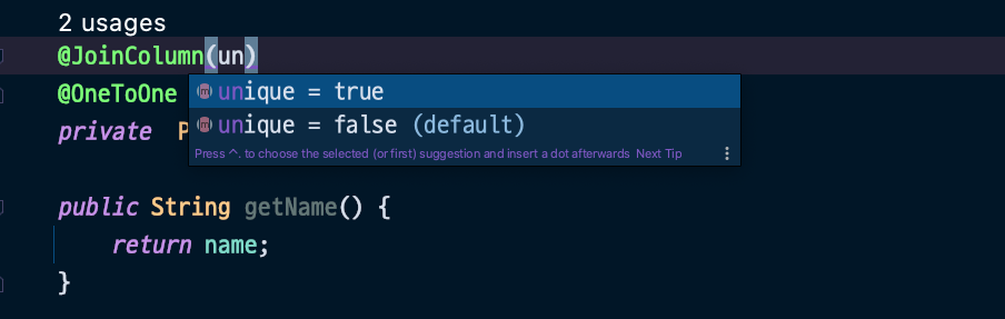 보면 알듯이 조인컬럼에다가 unique 제약 조건이 걸 수 있는데, 친절한건지 unique가 false가 되어있다.