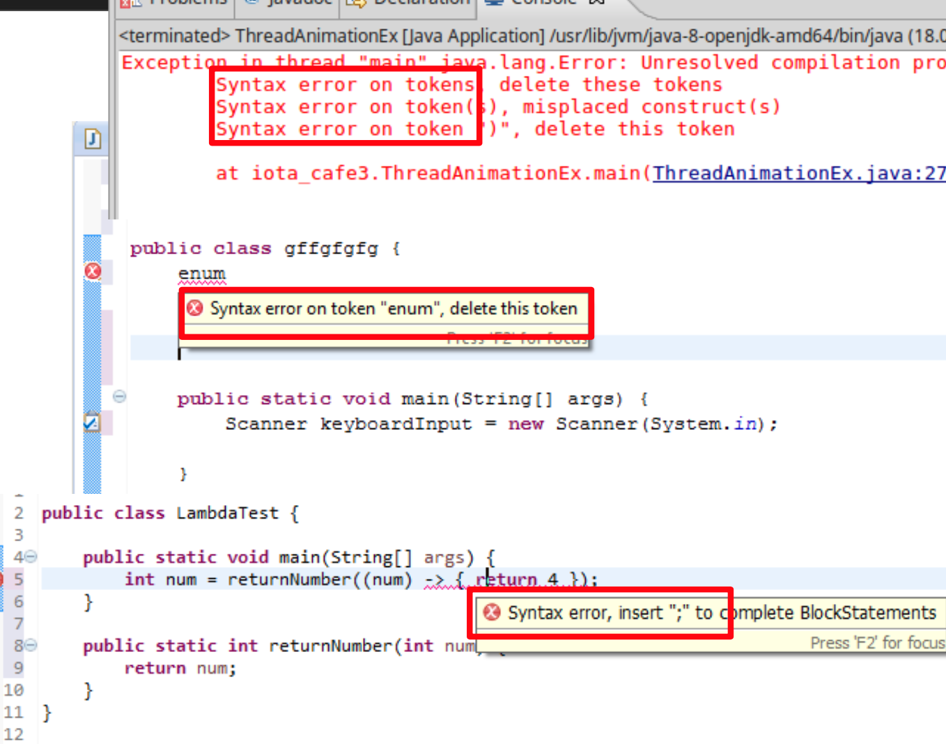 다음 과 같이 에러가 발생하게 되는데, 이 에러는 컴파일러 과정 중 구문분석 에서 발생한다는걸 알아 두자.