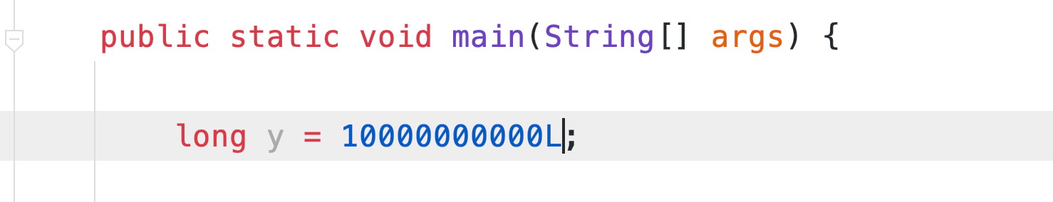 기본적으로 자바는 정수를 Int로 취급하게 된다. 그래서 long 타입에 정수를 집어 넣을 때에는, 정수 끝에 접미사로 ‘l’ 또는 ‘L’을 사용하게 된다. 하지만 대문자 L을 추천한다. 왜냐하면 가독성의 문제인데 소문자 ‘l’일 경우 1인지 알파벳 엘인지 알 아보기 어렵기 때문이다.